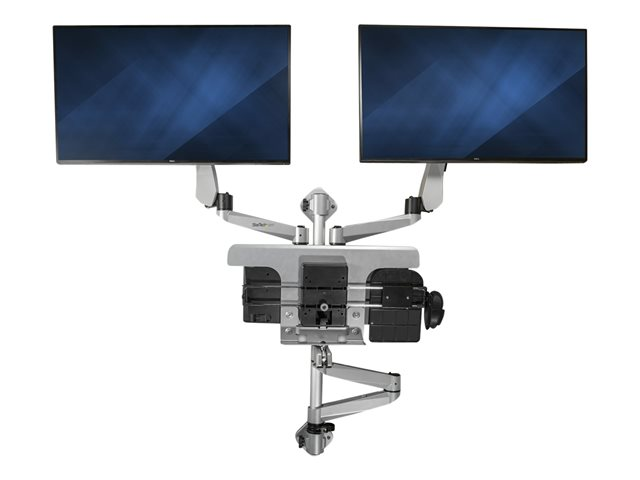 Foldable Standing Desk (WALLSTSI2) - Monteringssats (stång, mushållare, handledsstöd, väggmonteringskonsol, tangentbordsfack, 2 monitorfästen, 2 st. fjäderarmar, 2 st. svängarmar med logotyp, monitoraxel, väggmonteringsfäste med låsplatta, 2 st. svängarmar, musbord, musbricka, fast platta, EVA-musmatta) - för 2 LCD-bildskärmar/tangentbord/mus - plast, aluminium, stål - silver - skärmstorlek: 13"-30" - väggmonterbar - TAA-kompatibel